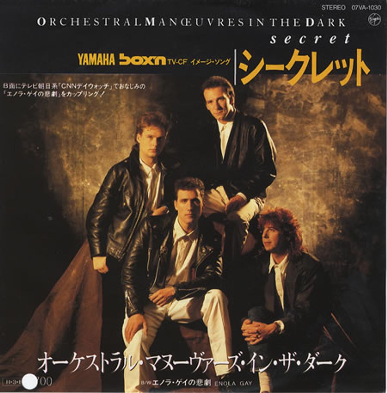 O.M.D. Secret (1985 Japanese wide-centred 7" vinyl single, also includes Enola Gay. Issued with a Yamaha captioned picture sleeve because that's what the band used, printed with English lyrics to both tracks on the reverse 07VA1030)