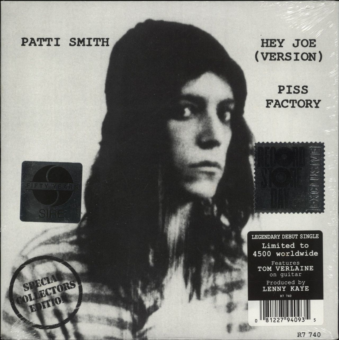 PATTI SMITH Hey Joe (Version)/ Piss Factory (Sealed 2017 UK/EU Special Collectors Edition 2-track 7" EP, the legendary debut single from 1974 in mono, featuring Tom Verlaine [Television] on guitar & produced by Lenny Kaye, an exclusive re-release for Record Store Day. Comes housed in a deluxe picture sleeve, sealed from new in triple hype stickered shrinkwrap. The vinyl is Mint & unplayed, limited to 4500 copies only R7740)