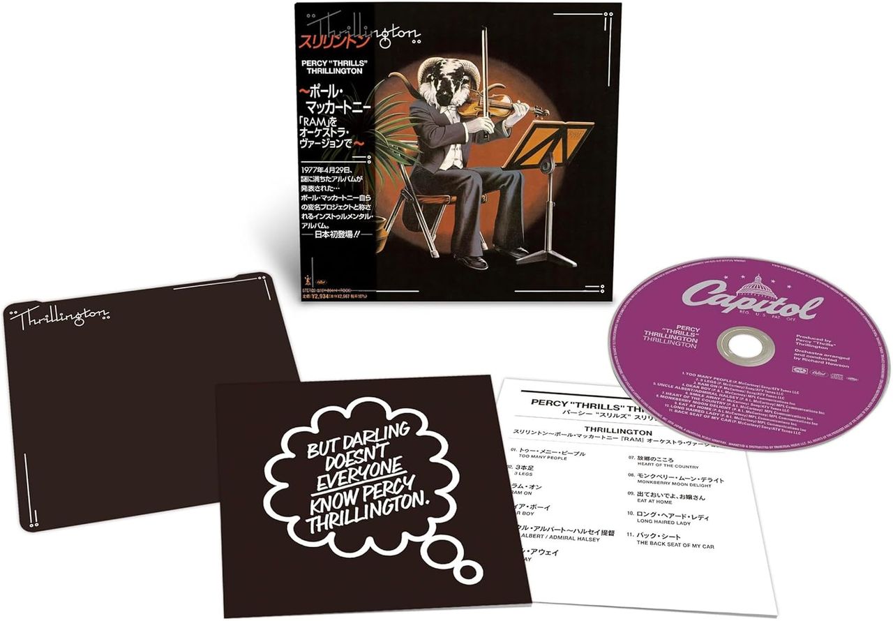 PERCY 'THRILLS' THRILLINGTON Thrillington (2024 Japanese manufactured Worldwide issue 12-track digitally remastered Super High Material SHM-CD, featuring Paul McCartney performing an orchestral version of his 'Ram' LP under the pseudonym of 'Percy Thrillington'. Housed in a mini replica card LP style gatefold picture sleeve with Japanese booklet, and obi-strip, still in the SHM-CD golden stickered bag UICY-80474K)
