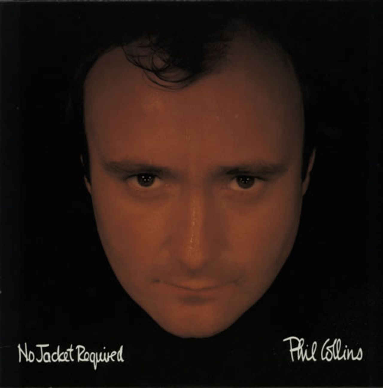 PHIL COLLINS No Jacket Required (1985 Canadian 10-track LP, the third solo album including the hit singles Sussudio, One More Night with Sting & Peter Gabriel guesting on backing vocals, picture sleeve with album credits inner. The sleeve shows very little wear and, aside from a few very light paper scuffs, the vinyl is in excellent condition)