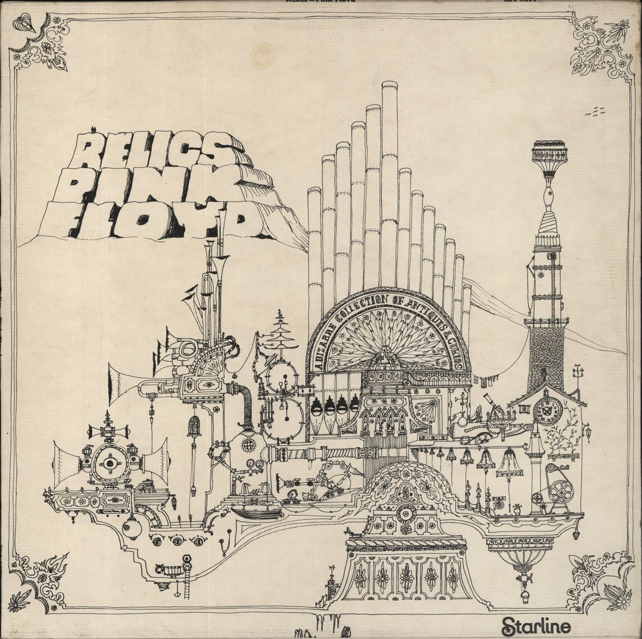PINK FLOYD Relics (1975 UK second issue of the 1971 11-track stereo LP compilation with 'Made In GT Britain' at 4 o'clock on the blue Starline label, housed in the fully textured picture sleeve with the original black & white Nick Mason artwork. The sleeve shows light wear and the vinyl is Excellent with light signs of play SRS5071)