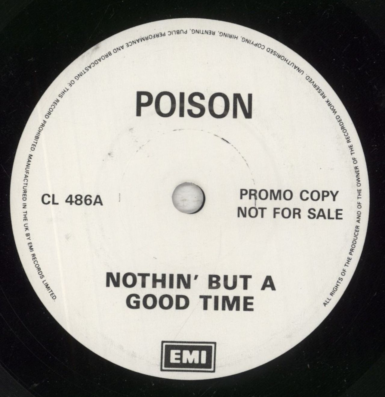 POISON Nothin' But A Good Time (1988 UK white label Promotional 7" single, also including Look But You Can't Touch, housed in a plain die cut sleeve. The vinyl remains in Excellent condition!)