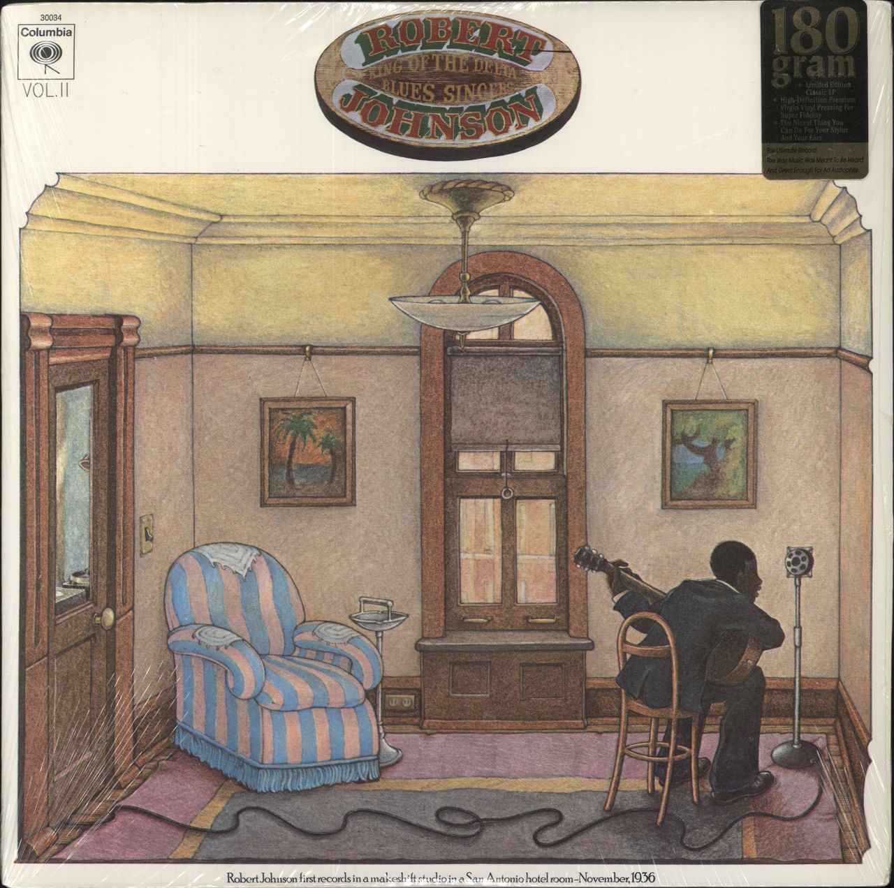 ROBERT JOHNSON King Of The Delta Blues Singers Vol II (00s US 16-track Mono LP pressed on 180gram Virgin Vinyl, compiling historic recordings made between 23rd November 1936 & 20th June 1937, housed in a deluxe picture sleeve still in the open shrinkwrap with the black & gold hype sticker attached. The vinyl is Mint & unplayed)