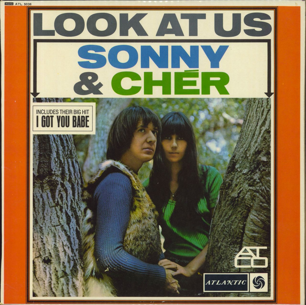 SONNY & CHER Look At Us (1966 UK 12-track deep groove Mono LP on the purple Atlantic 'fan' label, including their big hit I Got You Babe, front laminated picture sleeve. The sleeve shows light shelfwear & the vinyl remains in wonderful condition with few signs of play ATL5036)