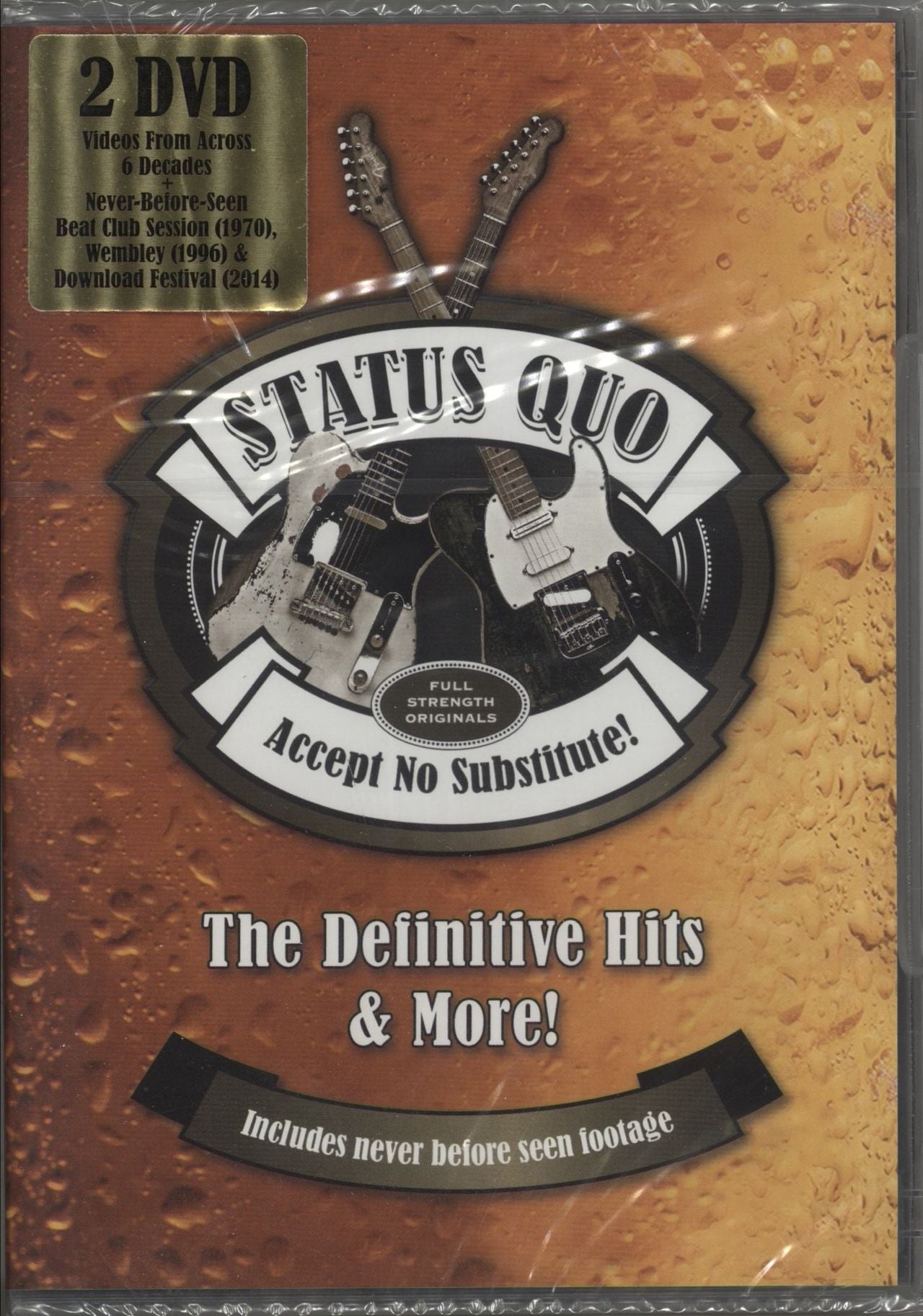 STATUS QUO Accept No Substitute! The Definitive Hits & More! (Sealed 2015 UK 83-track double DVD, includes never before seen footage as well as promo videos and live performances. Housed in a DVD case with picture sleeve insert, sealed with golden hype sticker attached)