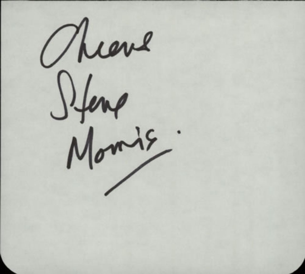 STEPHEN MORRIS Page From An Autograph Book (5" by 4" page from an autograph book that was part of an extensive collection obtained by the wife of a former Assistant Tour Manager for Eric Clapton. Well known and a personal friend of many of thestars that she collected autographs from, she had unprecedented access to backstage areas and VIP Events that enabled her to amass a vast collection of autographs with consequent impeccable provenance. This particular autograph was obtained on 31st March 2006 and is a nice unhurried example)