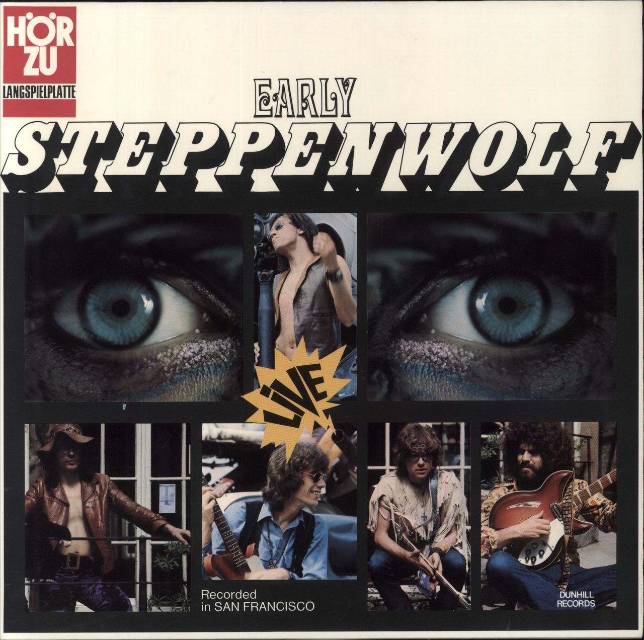 STEPPENWOLF Early Steppenwolf (1969 German 6-track stereo LP, recorded live at the Matrix in San Francisco on May 14th 1967 when the band were still 'The Sparrows'. Includes a frightening 21 minute version of Hoyt Axton's 'The Pusher'. Comes housed in a unique fully laminated sleeve with a great design front & back, complete with the Hor-Zu company inner. The sleeve shows little of its age & the vinyl is Near Mint SHZE266)