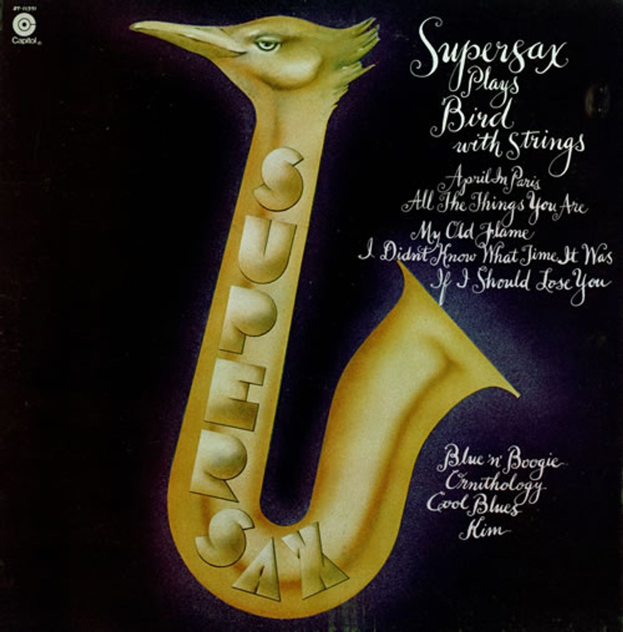 SUPERSAX Plays Bird with Strings (1975 US 10-track LP with saxophone arrangements by Med Flory, Warne Marsh & Buddy Clark, pasted picture sleeve. The sleeve shows some light age wear scuffing & the vinyl is Excellent with minor play only ST-11371)
