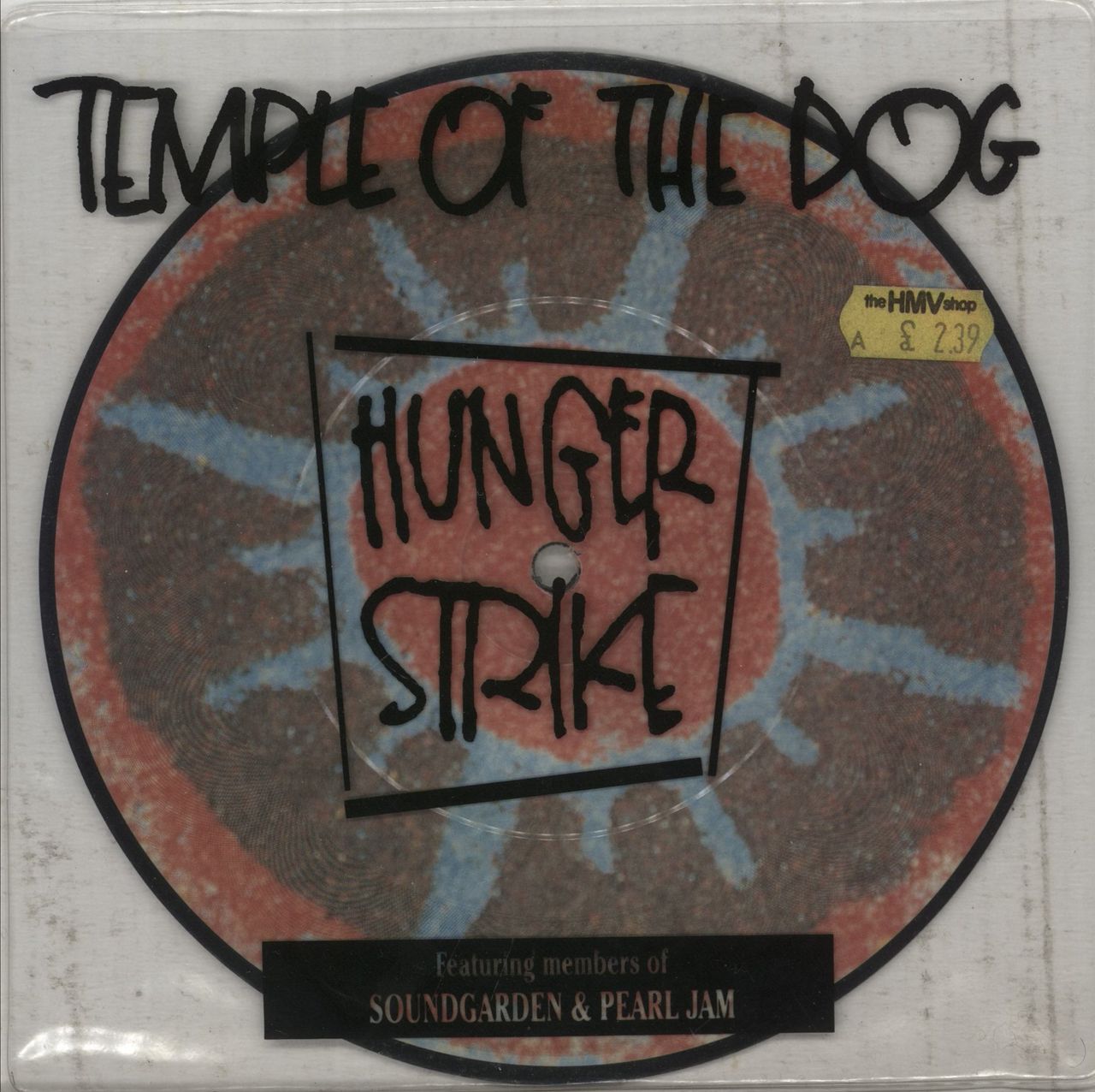 TEMPLE OF THE DOG Hunger Strike (Rare 1991 UK limited edition 7" Picture Disc single, also including All Night Thing, within a clear screen-printed PVC sleeve with a vintage HMV price sticker affixed. The PVC sleeve is free from splitsand the picture disc remains in near mint condition AM0091)
