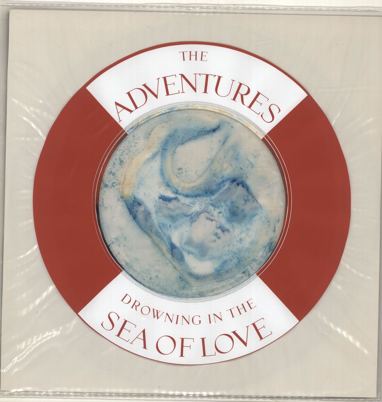 THE ADVENTURES Drowning In The Sea Of Love (Scarce 1988 UK limited edition 3-track 12" vinyl single, featuring the LP Version, also including Stay Away and The Curragh Of Kildare (Traditional), glossy picture sleeve within the custom printed PVC sleeve with a liquid pouch on the front & die-cut on the back. Like all limited edition releases from the 1980s that had liquid inside, this pack has dried out, otherwise remains in a really nice condition EKR76TW)