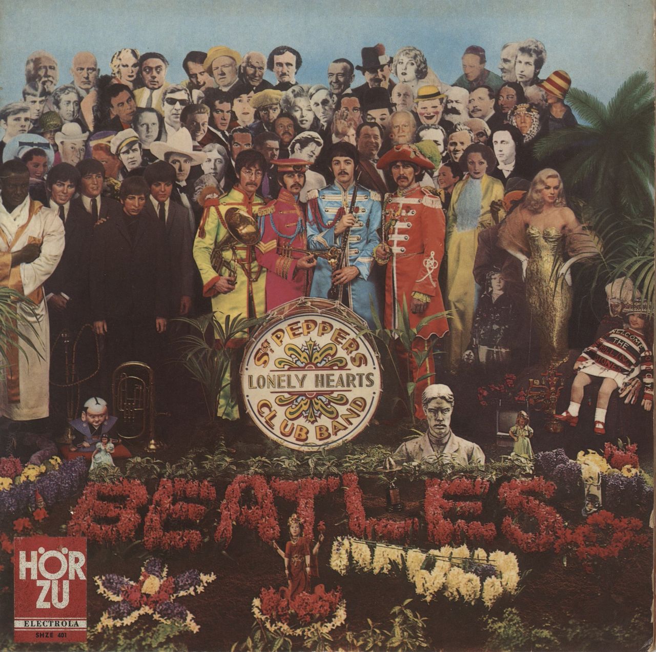 THE BEATLES Sgt. Pepper's (Rare 1969 German blue label Odeon/Hör zu issue of the 1967 13-track stereo LP, housed in a fully laminated gatefold sleeve with internal flipbacks and Hör-Zu sticker to the front . This was the second pressing manufactured in conjunction with Hör-Zu TV magazine but this issue was only available through mail order via Hör-Zu. Because fewer copies of this were made than the original & very sought after [white Odeon label] issue, this item is just as collectable & is rated as one of the world's best pressings of this classic album. The sleeve shows moderate wear and the vinyl is VG with light scuffs and hairlines to show for its years SHZE401)