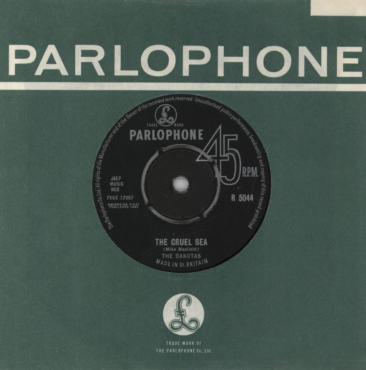 THE DAKOTAS The Cruel Sea (1963 UK 7" single with intact four prong centre, also including The Millionaire, Parlophone company die cut paper sleeve. The vinyl appears Excellent with light signs of play only R5044)