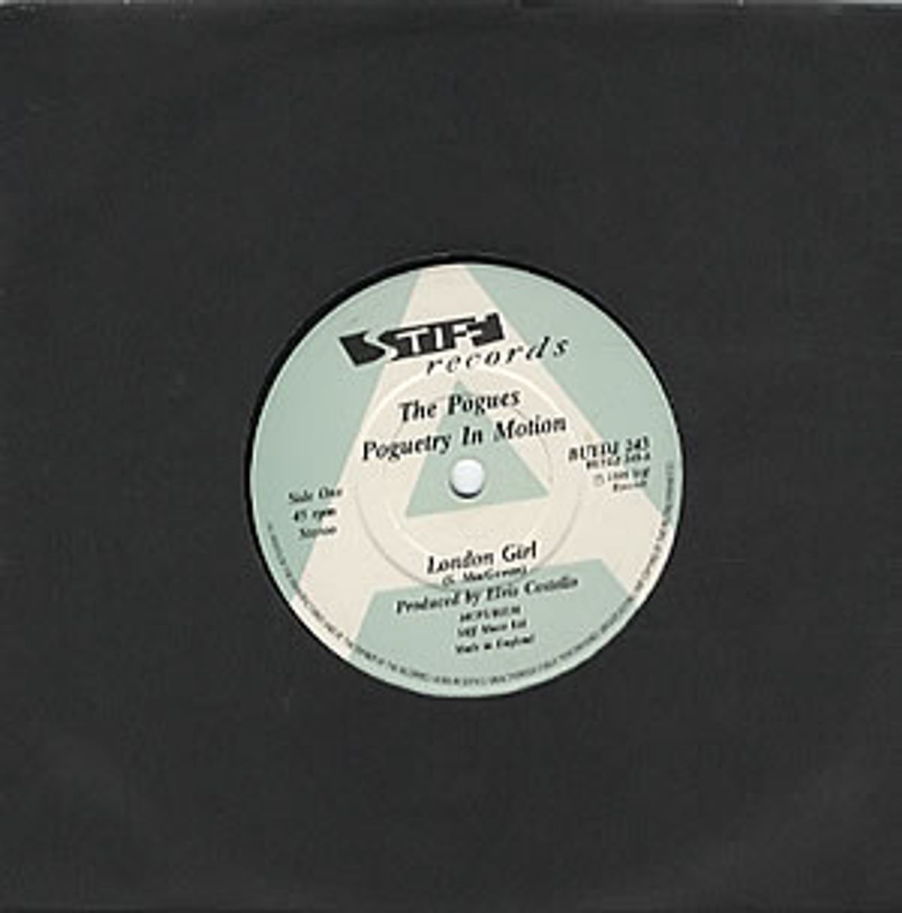 THE POGUES London Girl (1986 UK solid centre 'A' label promotional 7" vinyl 7", includes two tracks that were part of the Poguetry In Motion EP, the single that never was 'London Girl' backed with The Body Of An American. Obtained from a former Stiff Records employee, this example is in Mint condition BUYDJ243)
