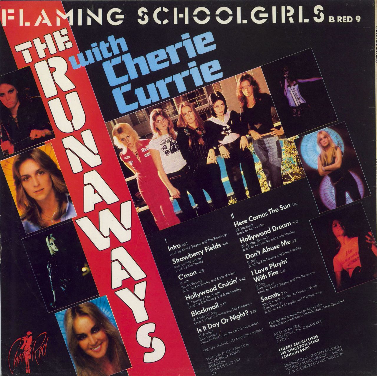 THE RUNAWAYS Flaming Schoolgirls (1980 UK 10-track LP by the band that started the careers of Joan Jett, Lita Ford & Cherie Currie, featuring all previously unreleased material with five live & five studio tracks, picture sleeve. The sleeve has light wear and the vinyl shows very little sign of play BRED9)