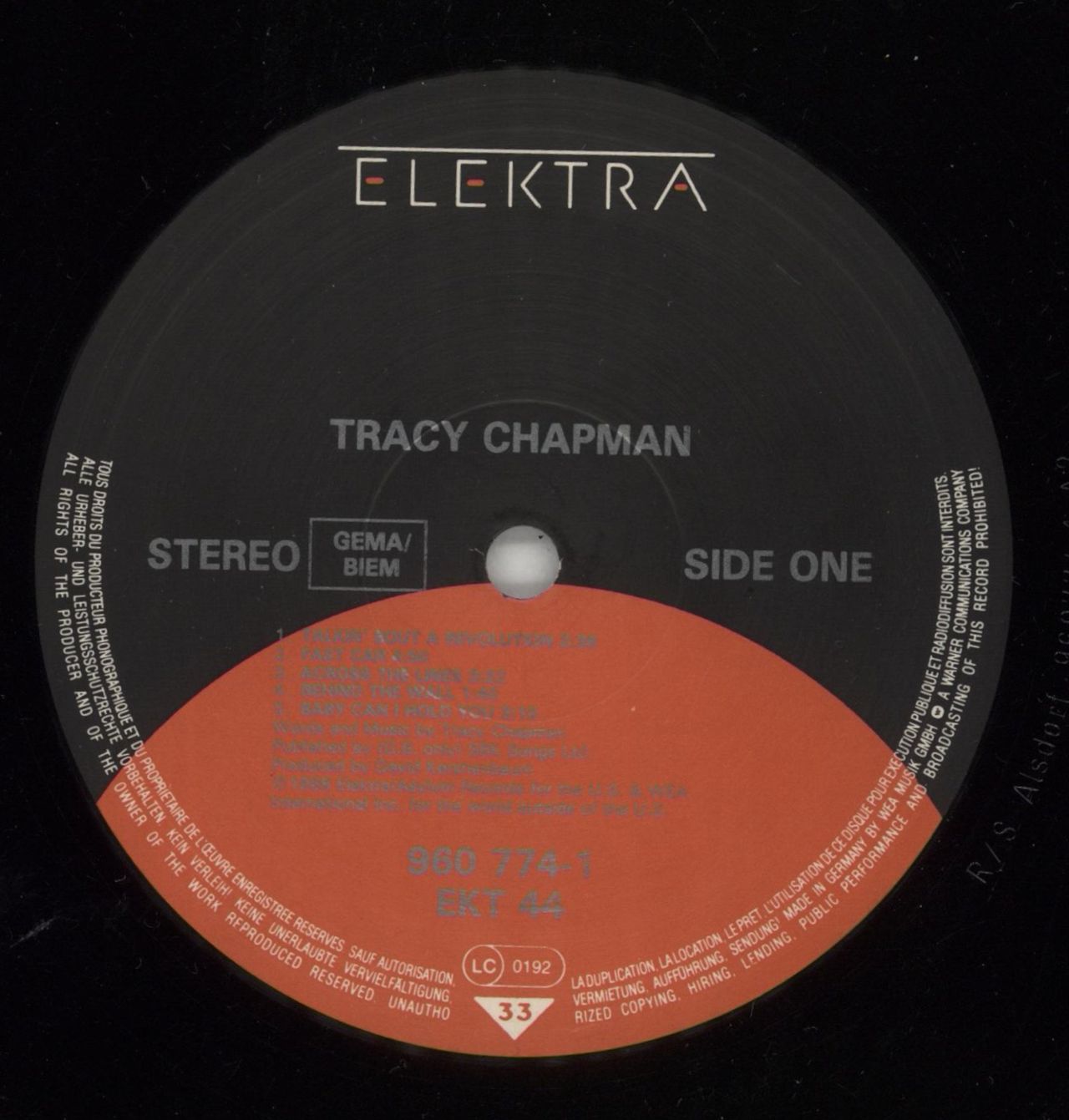 TRACY CHAPMAN Tracy Chapman (1988 UK first issue 11-track vinyl LP, pressed in Germany for the UK market, including the all-time classics Talkin' Bout A Revolution & Fast Car. Complete with illustrated lyric inner, the picture sleeve shows just a little light shelfwear but nothing too excessive in the slightest and the vinyl shows a few very faint cosmetic scuffs, none of which can be felt to the touch and upon a test play - do not appear in play EKT44)