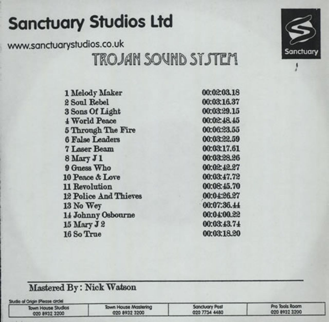 Trojan Records Trojan Sound System UK Promo CD-R acetate