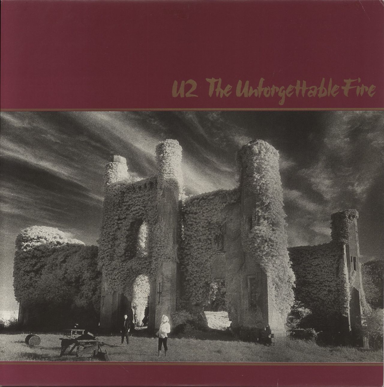 U2 The Unforgettable Fire (Original 1984 Australian issue 10-track vinyl LP, their fourth studio album including the singles Pride [In The Name Of Love] and A Sort Of Homecoming. The picture sleeve shows a little shelfwear to the edges / corners but comes with the double-sided A4 'U2 Collection' catalogue insert and picture / credit inner while the vinyl itself looks barely played)