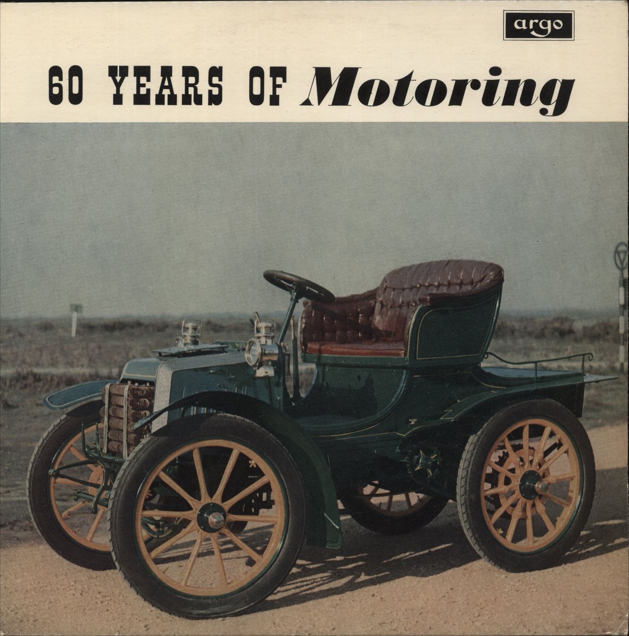 VARIOUS 60 Years Of Motoring (Wonderful 1962 UK Mono LP made in association with the Montagu Motor Museum, narrated by Raymond Baxter featuring the sounds of cars from the 1895 1 h.p. Knight to the 1956 2½ litre BRM, fully laminated pinched spine picture sleeve. The sleeve shows minimal wear and the vinyl is Excellent with little sign of play NF2)