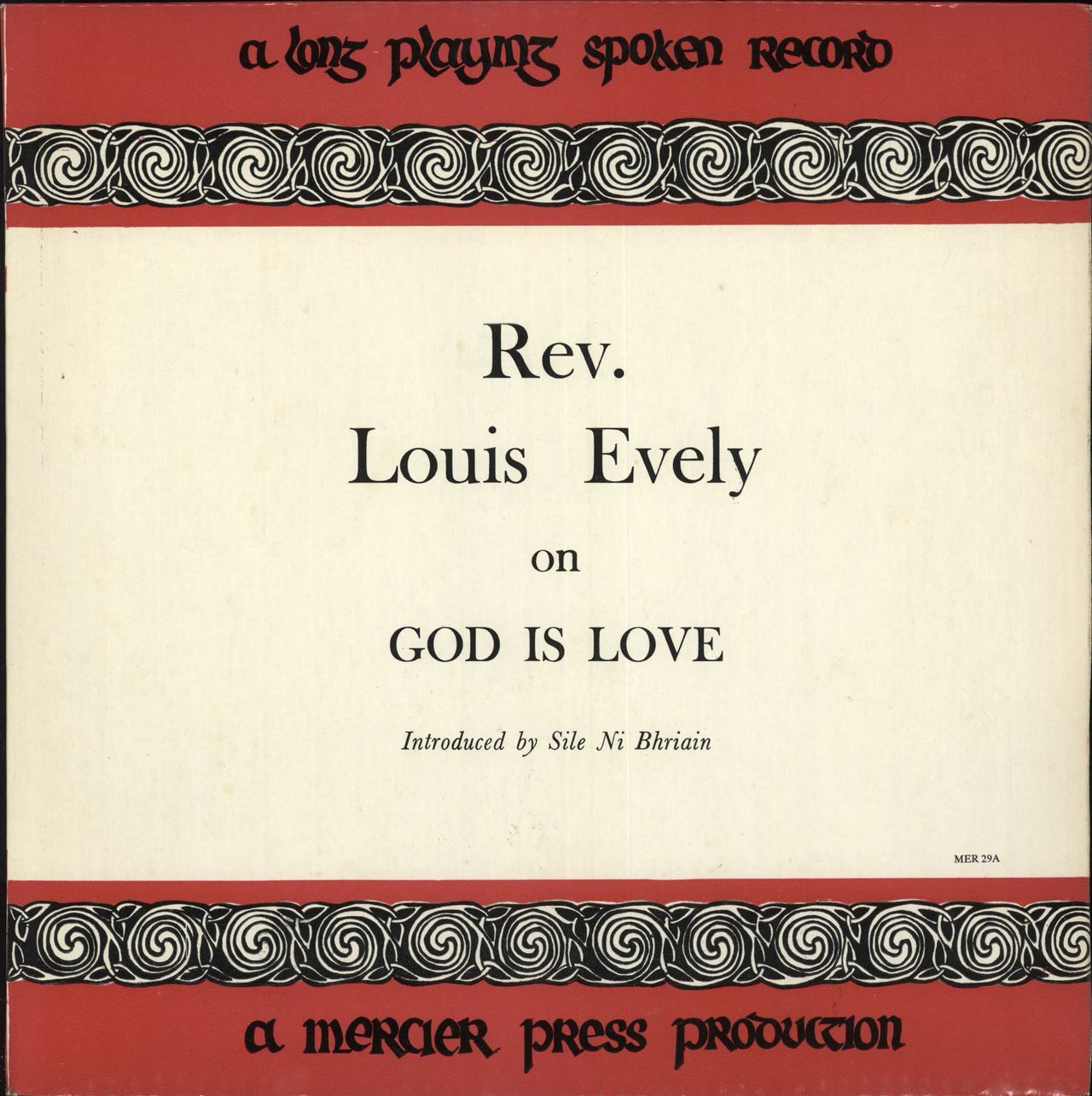REV. LOUIS EVELY God Is Love / Forgiveness (1967 Irish spoken word LP, introduced by Sile Ni Bhriain, featuring an uplifting sermon on either side, UK printed front laminated picture sleeve. The sleeve shows just a little light shelfwear, mostly to the unlaminated back, & the vinyl remains in excellent condition with few signs of play MER29)
