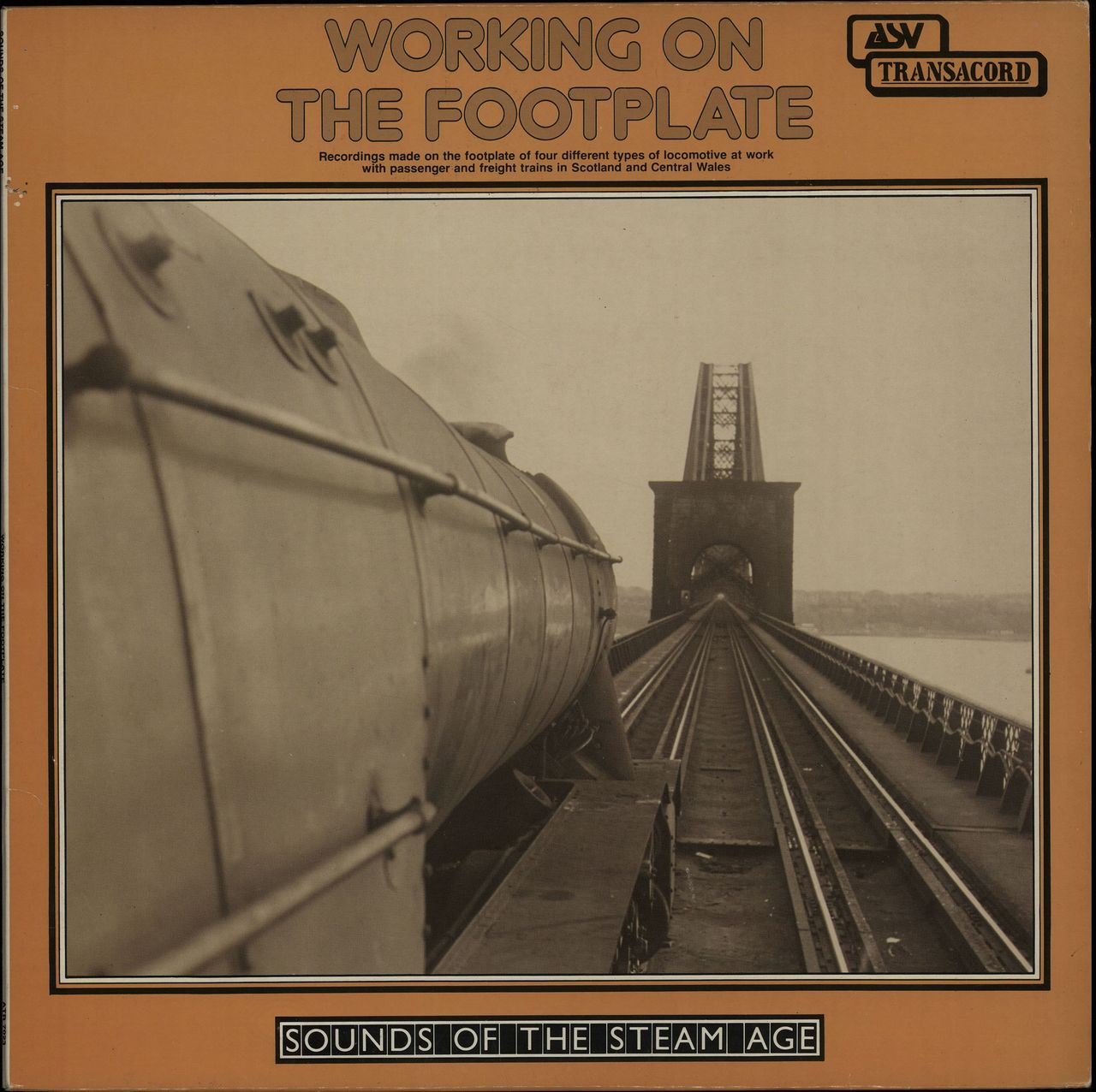 VARIOUS WORKING TRAINS Working On The Footplate (1982 UK Stereo issue of the 1964 LP featuring the sounds of classic passenger & goods steam locomotives of various classes at work on British Railways on the Swansea - Shrewsbury line, between Kinross &Milnathort and crossing the Tay bridge to Dundee, the Central Wales line between Knighton & Llangullo and between St. Rollox & Buchanan Street and an Aberdeen - Glasgow express out of Stonehaven, issued as part of the very collectable'SoundsOfThe Steam Age' series, picture sleeve with extensive liner notes. The sleeve shows just a little light shelfwear & the vinyl is flawless ATR7023)
