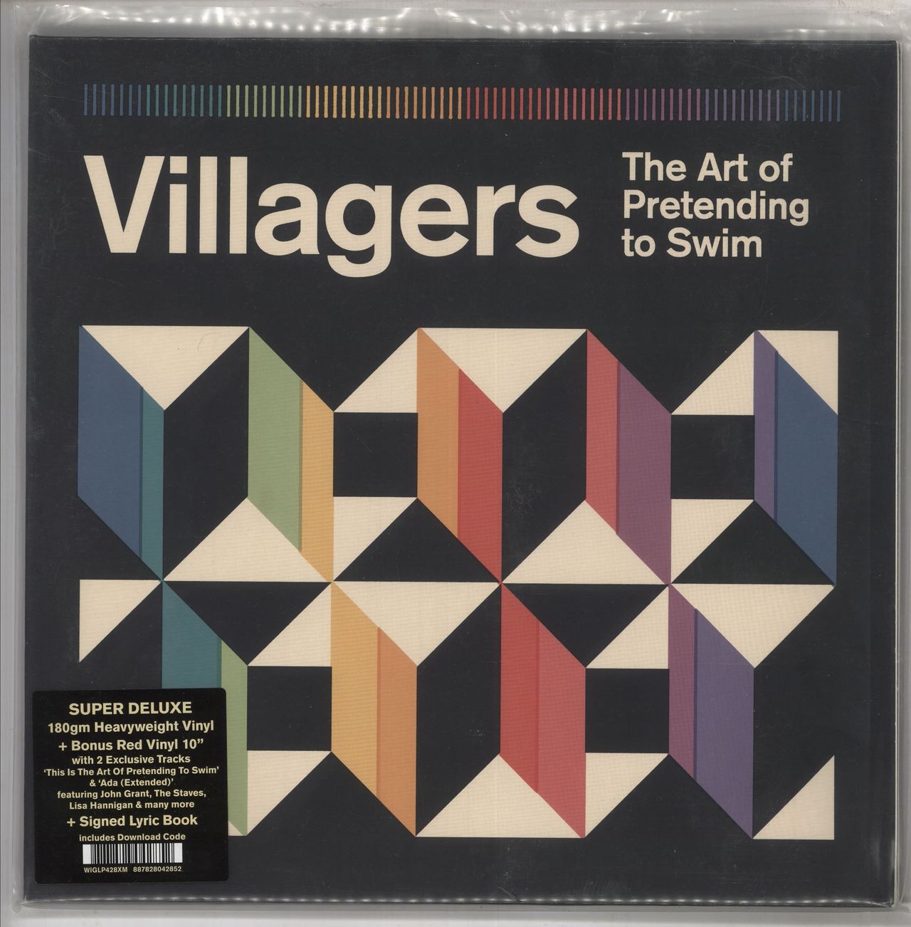 VILLAGERS The Art Of Pretending To Swim (2018 UK Super Deluxe Edition 9-track LP pressed on 180gram Heavyweight Vinyl, the fourth studio album from Conor J. O'Brien & co, including the singles A Trick Of The Light and Fool plus a Bonus Red Vinyl 10" featuring Ada [Extended] and 'This Is The Art Of Pretending To Swim'. Both discs remain in barely played housed in the ultra glossy gatefold picture sleeve which comes with the pictureinner, download code voucher and fold-out lyric insert. Additionally, this copy also comes with a bonus 5" x 7" lyric book which has been AUTOGRAPHED by Conor inside the front page! WIGLP428XM)