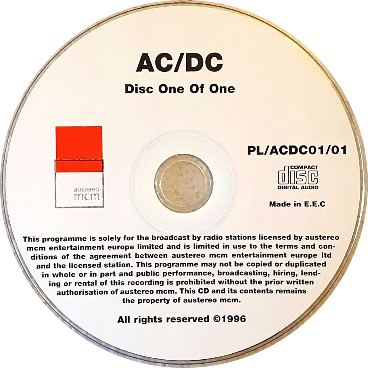 AC/DC Coca-Cola Planet Live (Mega Rare official 1996 Austrian promotional-only CD radio transcription show. This release is part of a limited edition live radio promo series sponsored by Coca-Cola and made by European label MCM/Austereo. Featuring 11-tracks recorded live in Spain, along with exclusive interview segments; custom printed disc wthin a clear plastic wallet PLA/ACDC01/01)