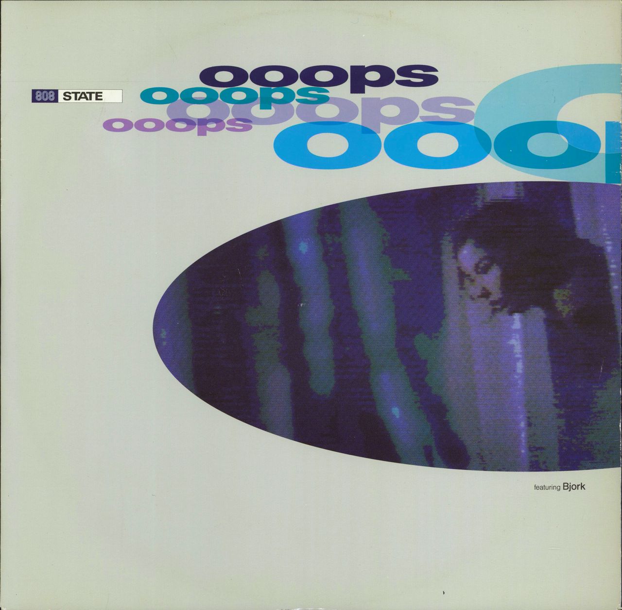808 STATE featuring BJORK Ooops (1991 UK 3-track 12" vinyl single featuring vocals by the much-loved Icelandic vocalist, also including 'Ski Family' and a live version of '808091'. Both the glossy picture sleeve and vinyl remain in excellent condition ZANG19T)