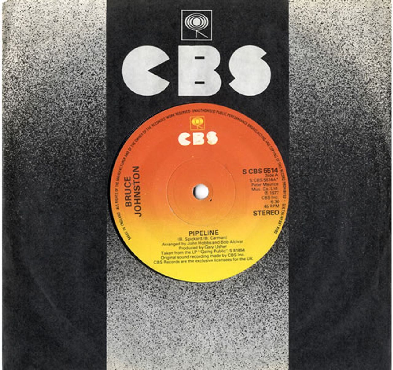 BRUCE JOHNSTON Pipeline (1977 UK solid centre 7" vinyl