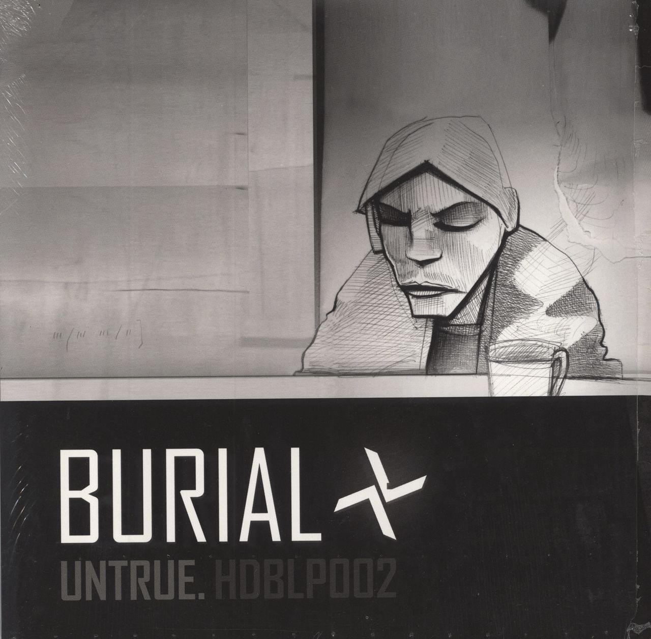 BURIAL Untrue (2016 UK Limited Edition 13-track double LP pressed on 180gram Vinyl ['HDBLP002 A 2015 1- TRANSITION BF97241-01 A1' in Side A run-out], Burial's second album from 2007 including some of his best work such as 'Archangel', 'Near Dark' & 'Ghost Hardware'. This version includes the short ambient interludes originally on the CD edition only. Single pocket picture sleeve with expired download card. The sleeve is Excellent [1" hairline fracture in top edge] & the vinyl is Near Mint with few signs of play HDBLP002)