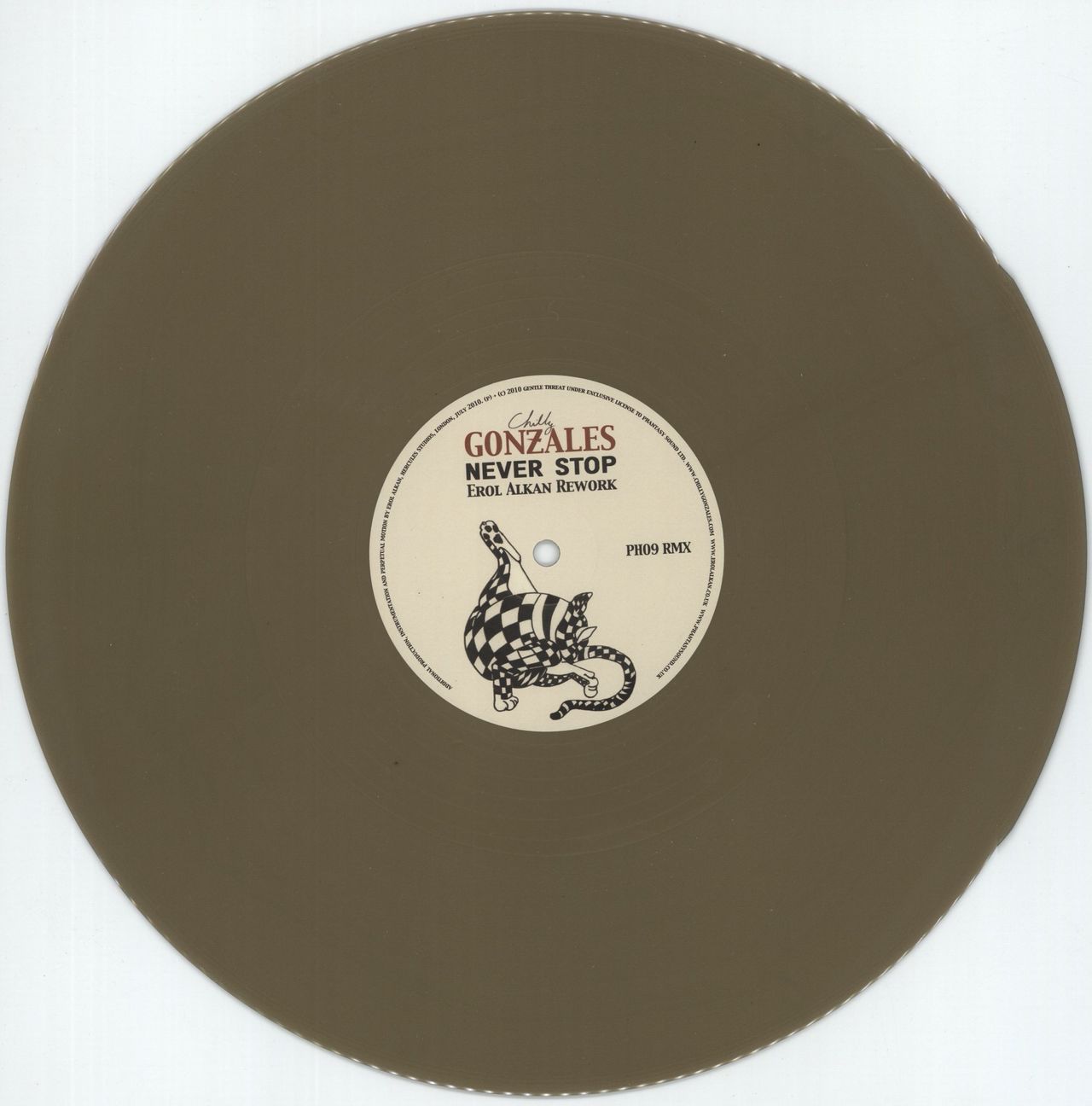 CHILLY GONZALES Never Stop [Erol Alkan Rework] (2012 UK 1-track 12" single, pressed on Gold Vinyl, housed in pvc sleeve. The vinyl remains in Near Mint condition. A great copy PH09RMX)