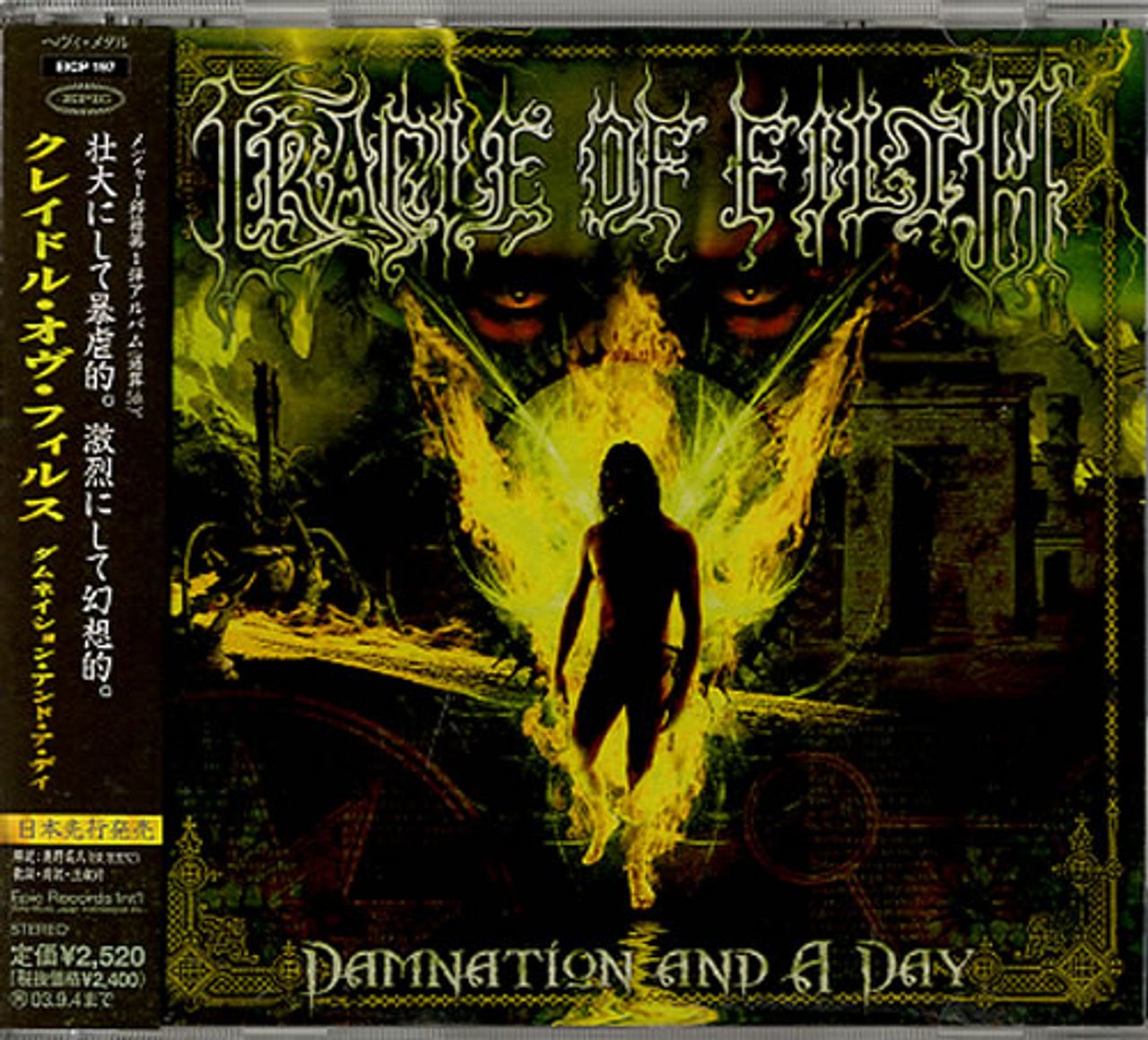 CRADLE OF FILTH Damnation And A Day (2003 Japanese 17-track promo sample CD album issued to radio stations and reviewers ahead of the actual release date. Custom stamped inner rim on the disc and promo stickered back insert, complete with picture sleeve, lyrics & obi-strip EICP197)