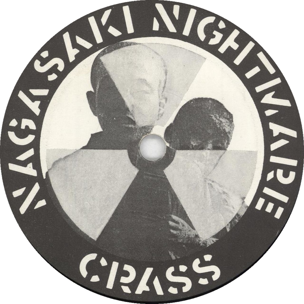 CRASS Nagasaki Nightmare (1980 UK 7" vinyl single, also featuring Big A Little A, with 'Man Made Power - Man Made Pain - Deadly Reign' handscratched in the run out grooves, plain die-cut paper sleeve. The vinyl appears excellent - a great playcopy)