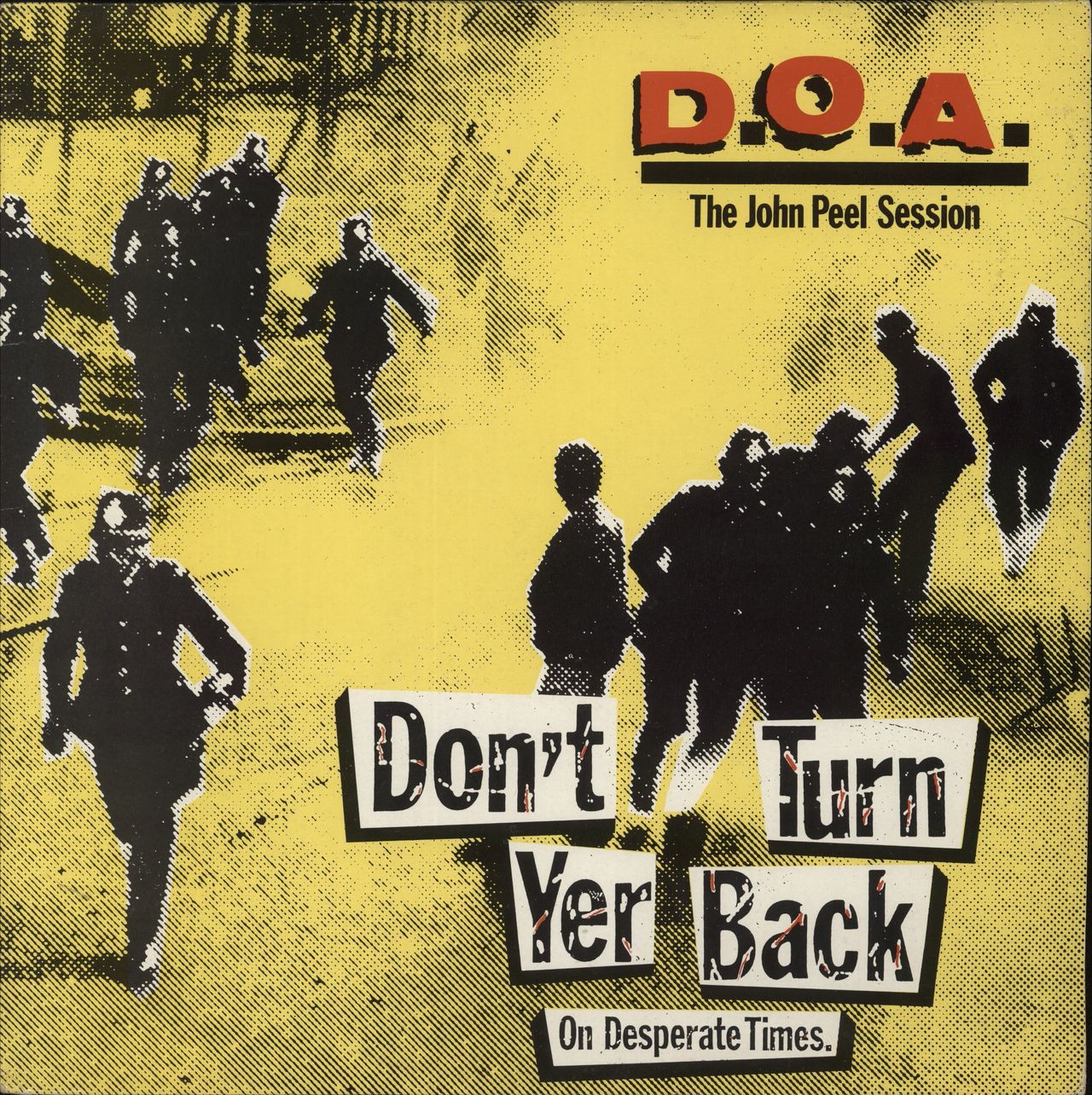 D.O.A. Don't Turn Yer Back [On Desperate Times] (1984 UK 4-track 12" vinyl EP. Recorded on 3rd April, 1984 at the BBC studios, London, for a Peel Session. Picture sleeve. The sleeve shows some corner / edge wear. The vinyl is Excellent with minimal signs of play VIRUS42)