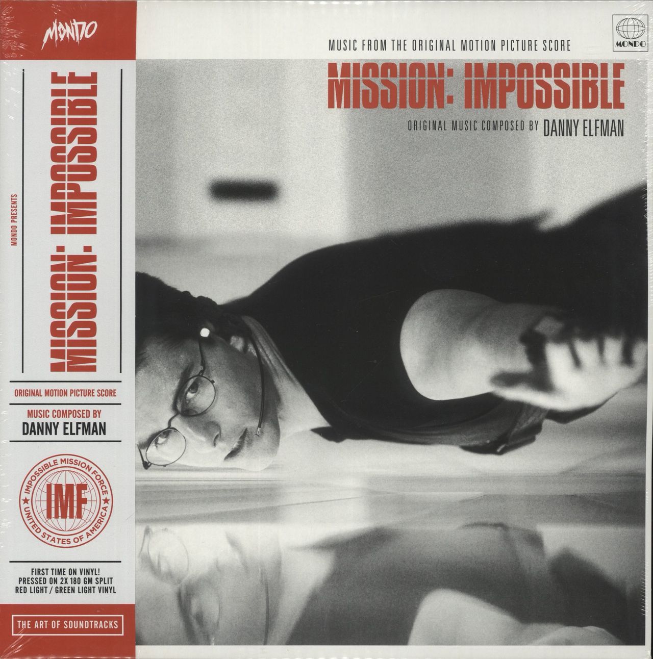 ORIGINAL SOUNDTRACK Mission: Impossible (Sealed 2018 US Limited Edition 18-track double LP pressed on 180gram Red & Green Split Vinyl, featuring Danny Elfman's suspense-filled score from the soundtrack to the 1996 action spy movie starring Tom Cruise, on vinyl for the first time! Comes housed in a deluxe gatefold picture sleeve complete with the printed insert & obi-style strip. Sealed from new, the vinyl isMint & unplayed. An essential high quality Mondo release for the soundtrack collector MOND-151)