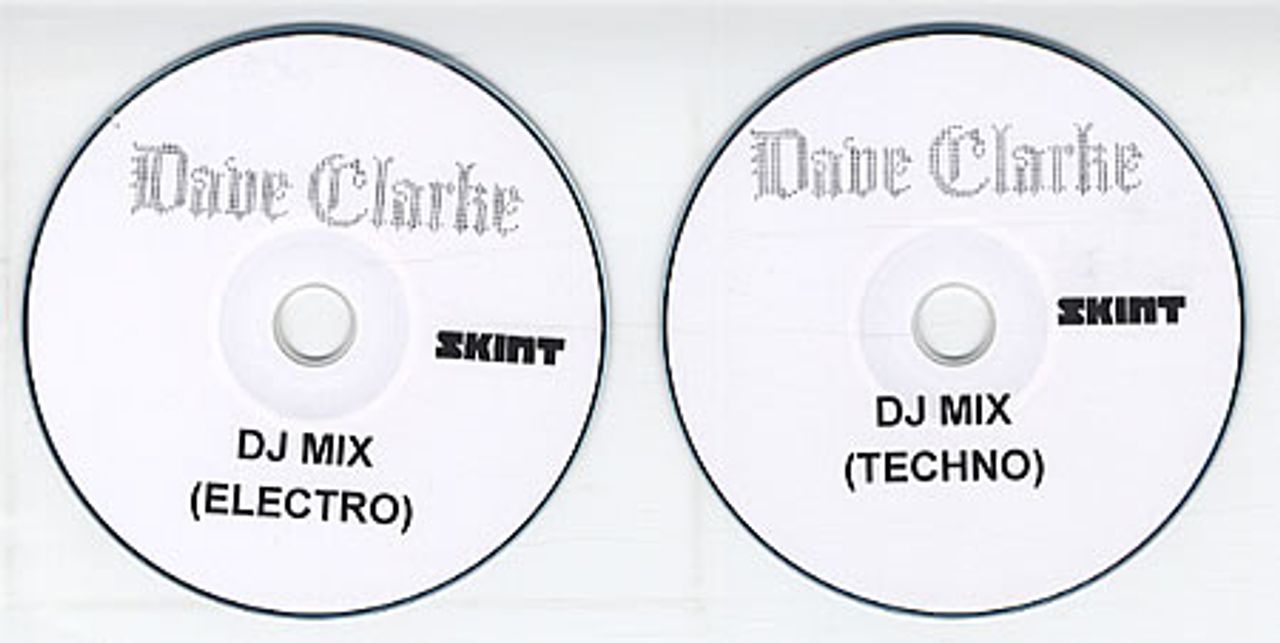 DAVE CLARKE DJ Mix - Techno & Electro (UK Skint label promotional set of two 1-track CD-R acetate singles, includes 30:16 Techno mix & 30:07 Electro mix, custom stickered discs)