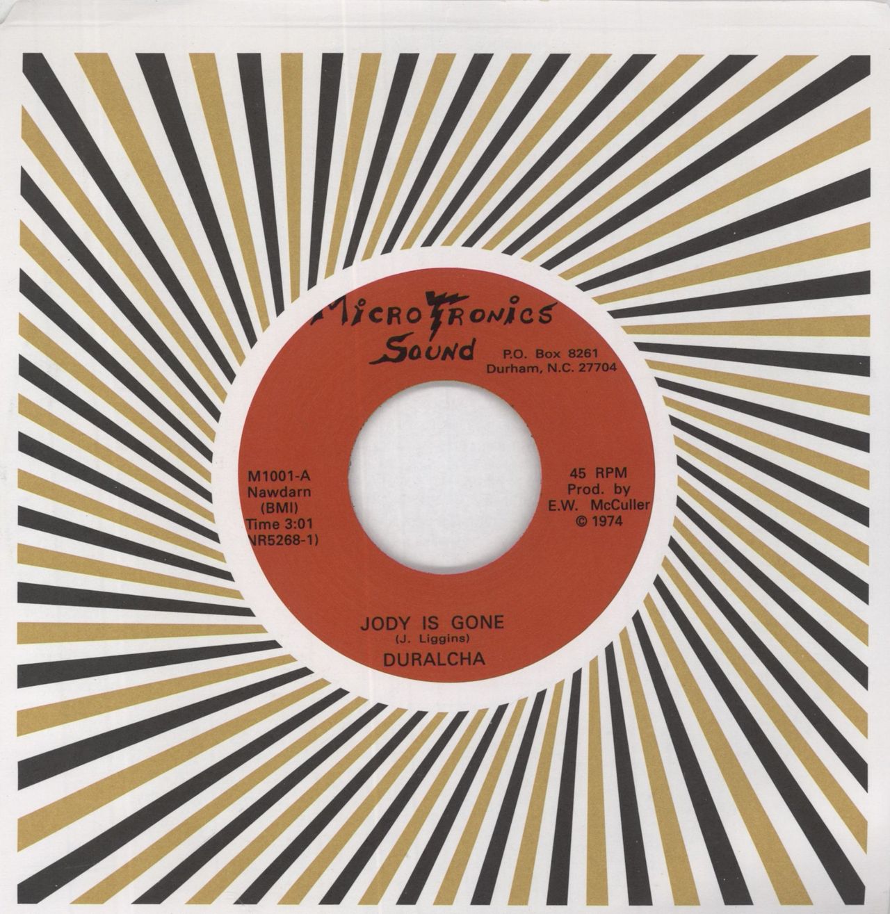 DURALCHA Jody Is Gone (2012 US 7" vinyl single with wide-centre. Also featuring Ghet-To Funk on the B-side. Housed in a custom Numero Group die-cut sleeve. The sleeve shows a little wear on the die cut edge but the vinyl remains in Near Mint NUM045.09)