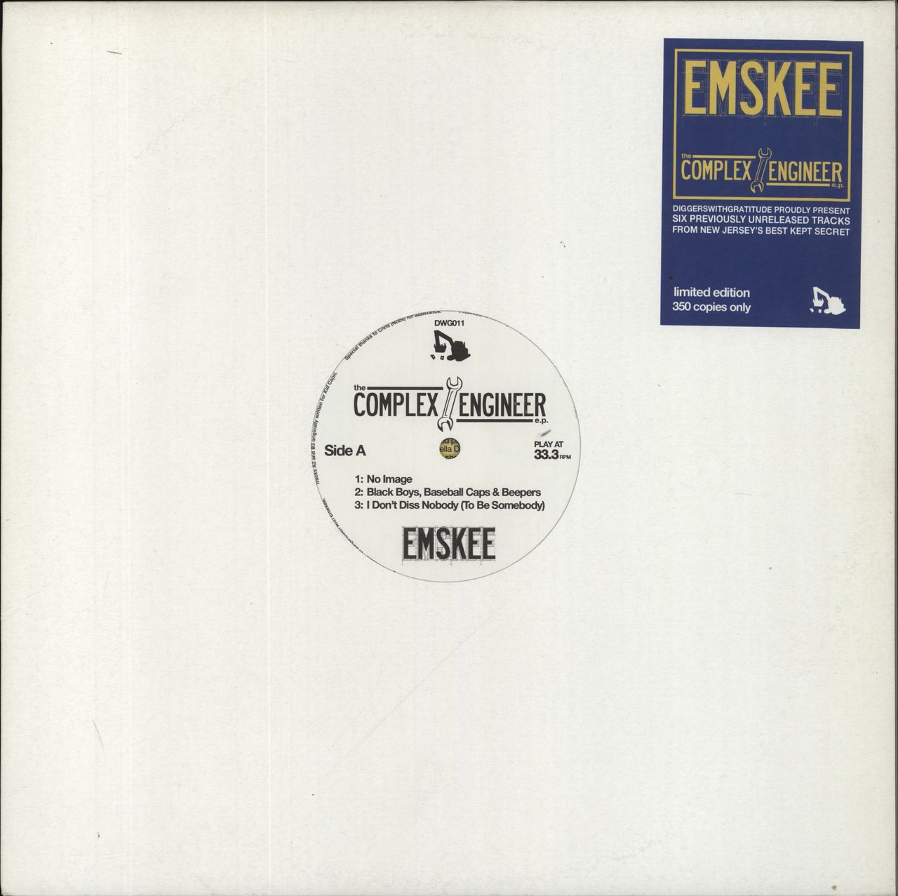 EMSKEE The Complex Engineer E.P. (2011 UK 6-track 12" vinyl EP. Plain die-cut sleeve with title sticker with label insert. The vinyl is Excellent with only light signs of play ***Limited to only 350 copies*** DWG011)