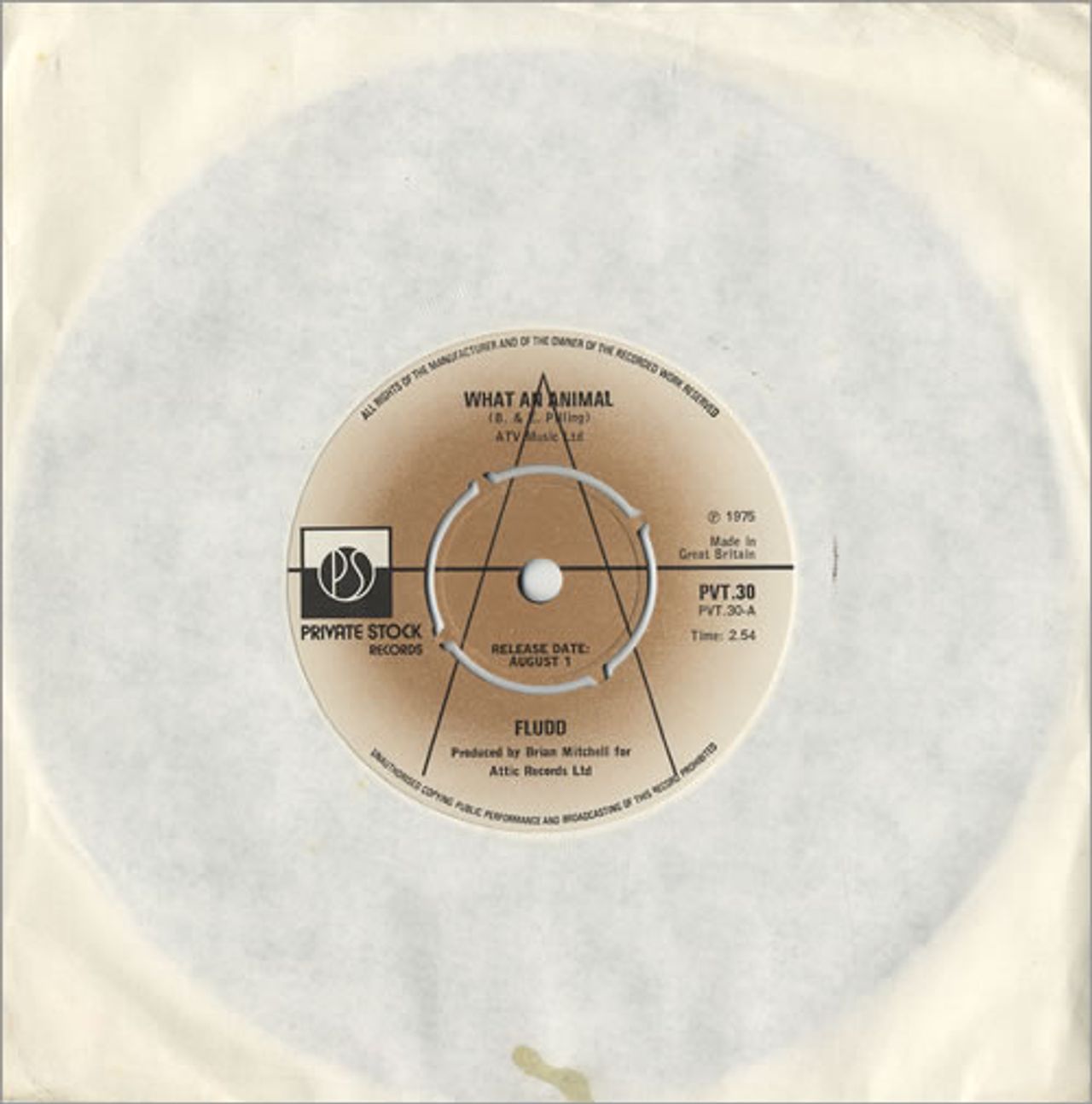 FLUDD What An Animal (1975 UK 'A' label demonstration vinyl 7" for