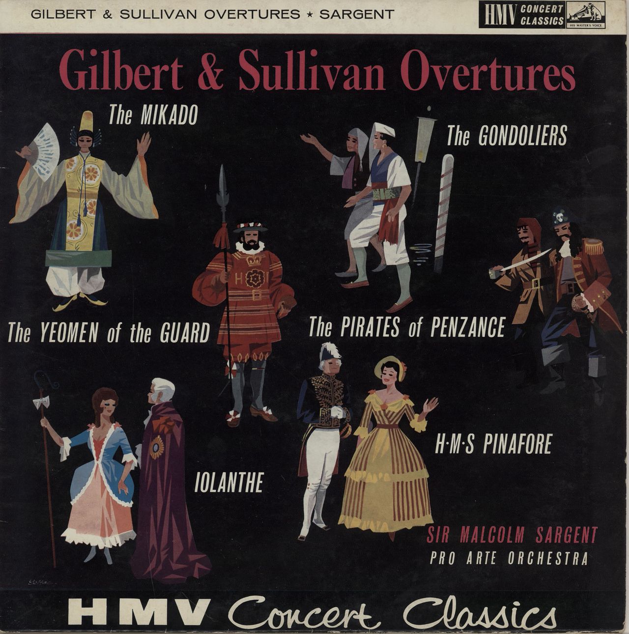 THE PRO ARTE ORCHESTRA conductd by SIR MALCOLM SARGENT Gilbert & Sullivan Overtures (1959 UK 6-track mono vinyl LP featuring the overtures to The Mikado, The Goldoliers, The Yeomen Of The Guard, The Pirates Of Penzance, HMS Pinafore & Iolanthe. The flipback picture sleeve shows just a little edge scuffing & discolouring to the back while the vinyl has few signs of play; both remaining Excellent XLP20003)