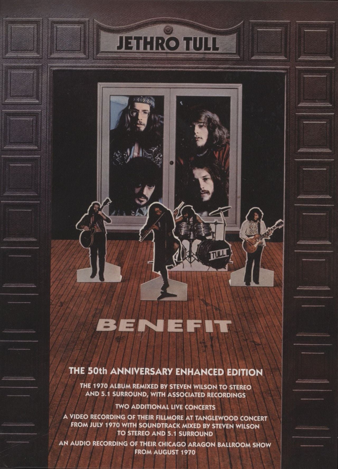 Benefit (The 50th Anniversary Enhanced Edition) contains a copious amount of expanded material, building upon the 2013 Steven Wilson remixes. CD3 contains a previously unreleased Steven Wilson remix of Jethro Tull performing at Tanglewood in 1970, while DVD2 has the previously unavailable film footage of that show. Further to that, CD4 contains a newly remastered mono version of a previously unreleased concert at The Aragon Ballroom in 1970.