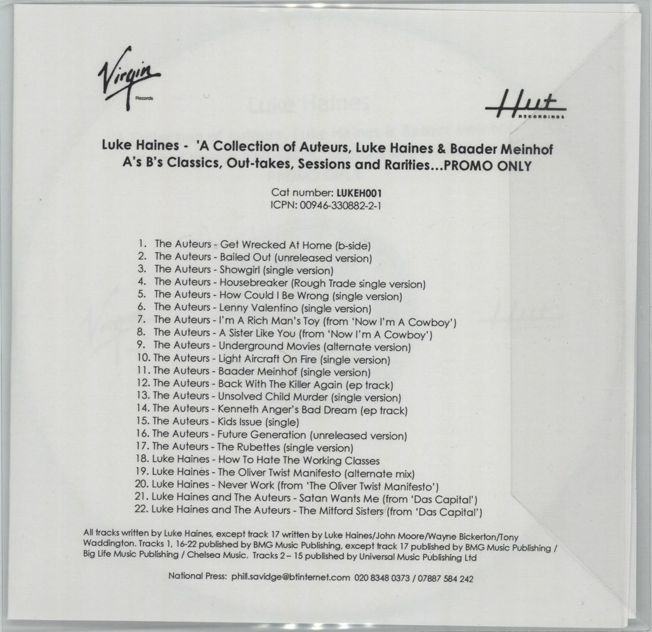 Artist - Luke Haines (click link for complete listing)