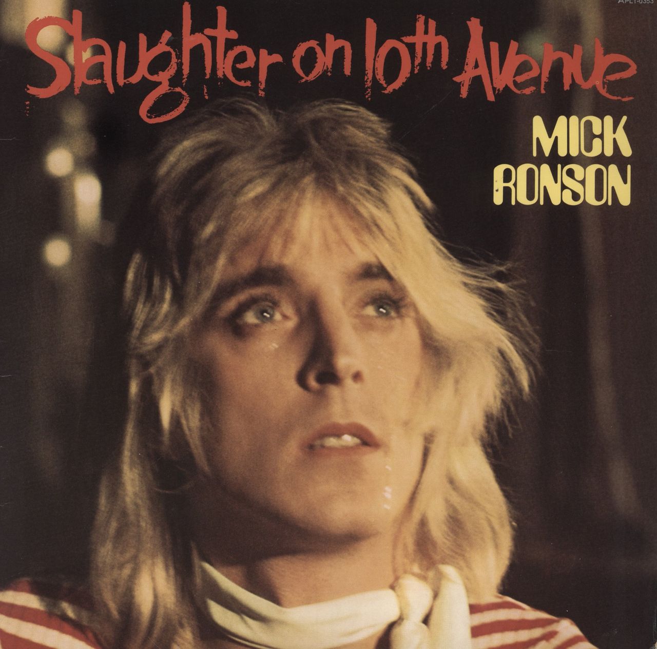MICK RONSON Slaughter On 10th Avenue (1974 US orange RCA label 7-track Dynaflex LP by the late Spiders From Mars guitarist - one of the perfect examples of Glam, Rock & Art colliding to magnificent effect in the seventies. Includes Growing Up&I'm Fine, the first & only Bowie/Ronson composition to be publicly acknowledged. Housed in a picture sleeve which is graded as Excellent with just some minor edge scuffing in places, the vinyl is also Excellent with some cosmetic surface marks& hairlines APL1-0353)
