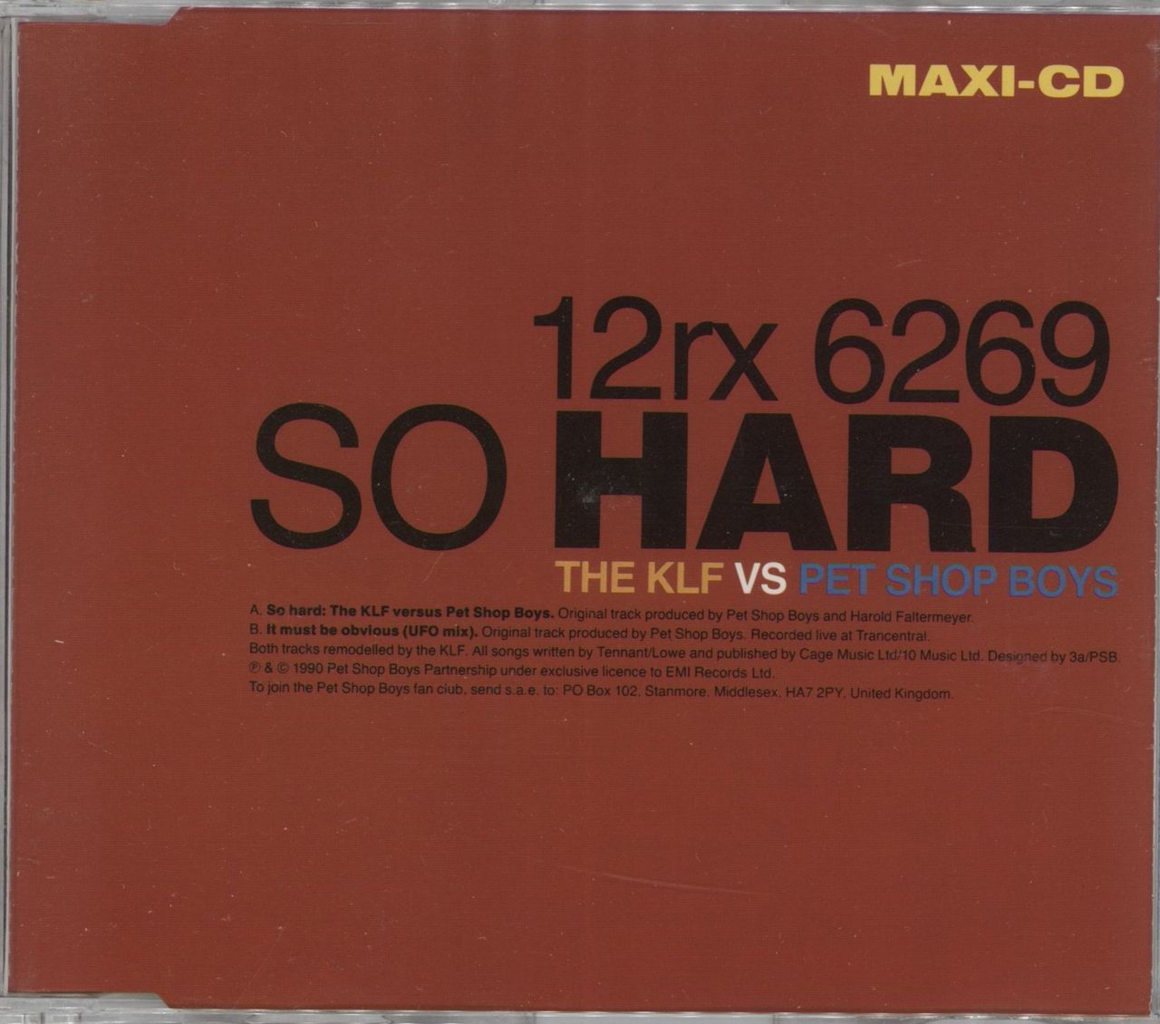 THE KLF VS PET SHOP BOYS So Hard Remix (1990 German 2-track CD maxi-single, featuring the 5:27 KLF vs Pet Shop Boys Mix & 9:22 It Must Be Obvious U.F.O. Mix, housed in a slimline jewel case with the title sleeve inlay)