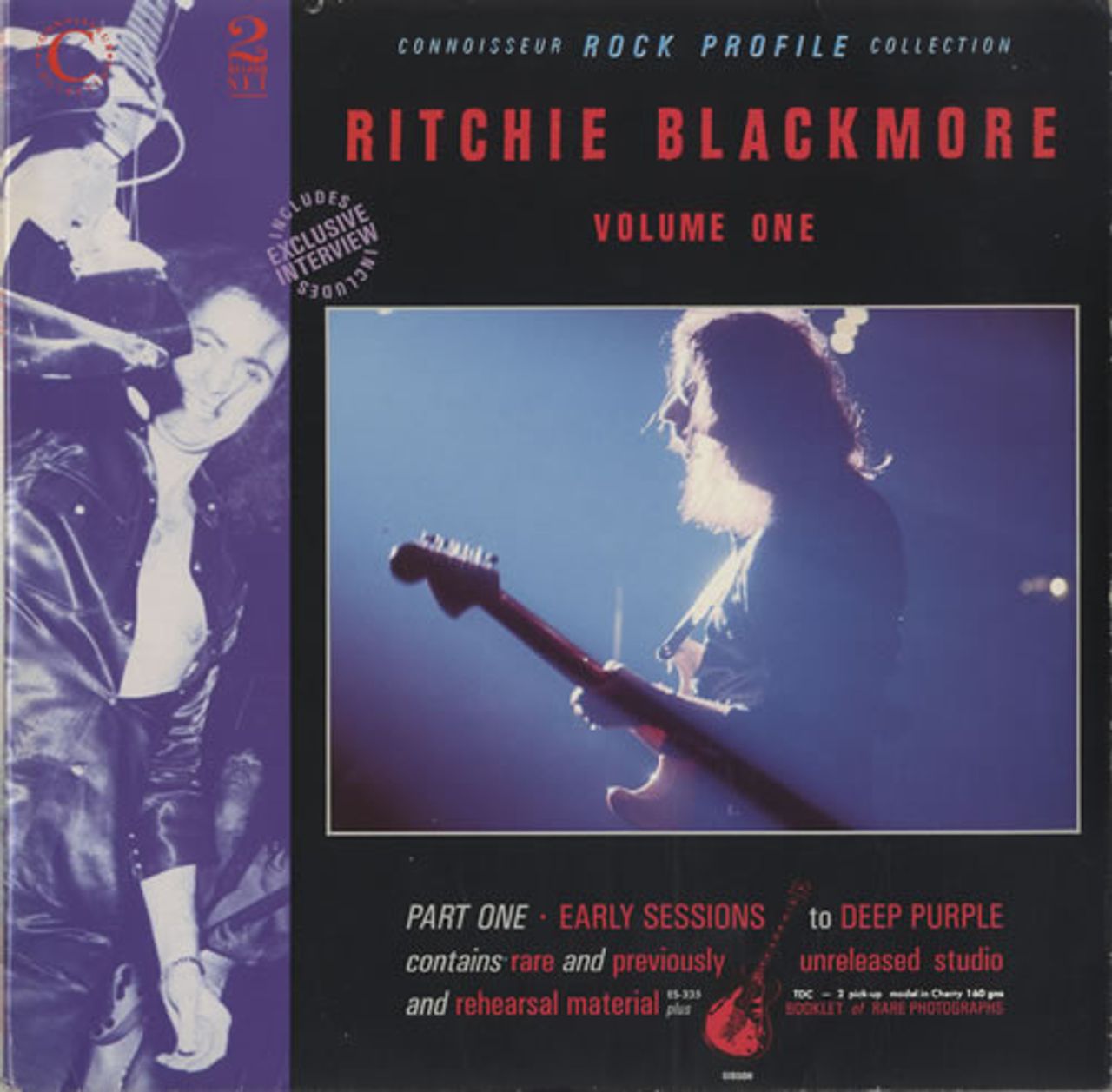 RITCHIE BLACKMORE Rock Profile - Volume One (1989 UK Connoisseur Collection 'Early Sessions to Deep Purple' 23-track double vinyl LP, compiling previously unreleased studio & rehearsal material plus an exclusive interview, housed in a spot lacqueredgatefold picture sleeve with 8-page booklet of rare photographs! The cover is Excellent with just a little mild edge scuffing & the vinyl discs appear barely played! RPVSOPLP143)