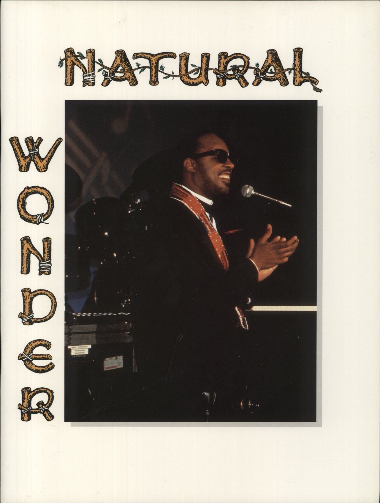 STEVIE WONDER Natural Wonder 1992 (1992 UK 23.5 x 30cm tour programme filled with personal, behind the scenes, publicity and live images, a montage of press clippings, Stevie biography, information regarding the tour and what the fans can expect from the show, tour credits, short band biographies and more, with laminated front & back covers with rice pages inside the cover. Whilst the cover shows some light scuffing to the front and the inner pages all remain in superb condition.Includes a ticket stub for the 31st of May show at the NEC in 1992)