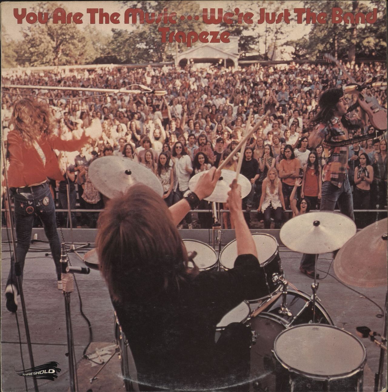 TRAPEZE You Are The Music... We're Just The Band (Original 1972 UK 8-track vinyl LP on the white & blue Threshold label, the third album from the English rock band featuring Glenn Hughes. The original picture sleeve comes with a poly-lined record company inner and displays a little general shelfwear and the vinyl has just a few light surface scuffs THS8)